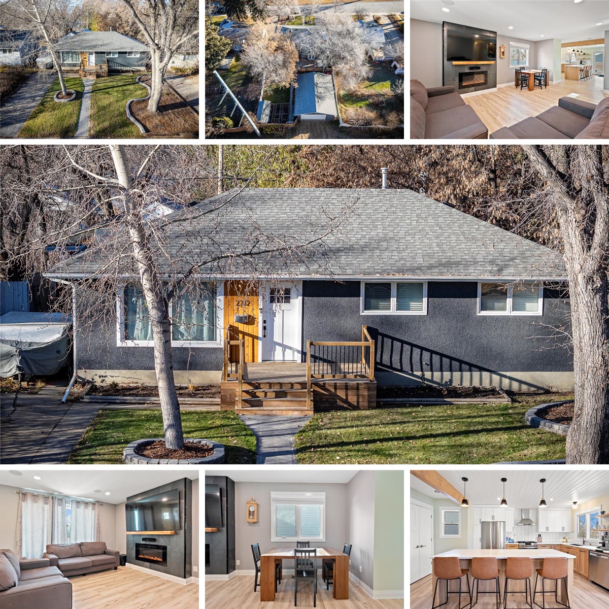 Welcome to this beautifully upgraded 1,390sqft bungalow with four main floor bedrooms in Nutana Park! Built in 1964 and set on a large lot surrounded by mature trees, this home blends classic charm with modern updates, offering a perfect blend of comfort and style. A 1974 addition provides a spacious kitchen, dining area and a bright living room with vinyl plank flooring. The kitchen was fully remodeled in 2023 with custom hickory cabinetry, full plywood construction, quartz countertops, new stainless steel appliances, tile backsplash, pantry and clever pull-out storage solutions. The main floor features four bedrooms, updated carpets (2018), and a refreshed bathroom (2018) with tiled walls, a lighted mirror, and a floating vanity. Custom closet organizers add a touch of luxury to all the spaces. The living room is enhanced with an electric fireplace, slate tile surround, and walnut mantle (2019), making it a cozy retreat. Ceiling speakers complete the room's ambiance for both relaxation and entertaining. The fully renovated basement (2024) offers even more functional space, including a new 3-piece bathroom with a custom-tiled shower, a hobby room\den with built-in shelving, a fifth bedroom, and a large storage room with metal shelving. Faux LED windows bring natural light to the space, and a solid hickory railing adds character and warmth. The home is also equipped with a newer high-efficiency furnace and water heater (2023), air conditioning (2018), and updated shingles (2017). The exterior was updated in 2024 with fresh soffit and fascia. Outside, enjoy the large wraparound deck, a fully landscaped front and backyard with underground sprinklers, garden soakers, and a 6’x12’ shed with matching siding and barn doors. The oversized 30’x24’ heated garage with 10’ ceilings (2018) offers ample storage and workspace. Conveniently located within walking distance of schools, parks, Market Mall, and Stonebridge, this meticulously upgraded home is a must-see!